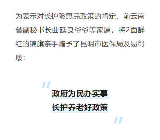 【昆明】前云南省副秘書長代表參保家屬送錦旗,點(diǎn)贊長護(hù)養(yǎng)老好政策