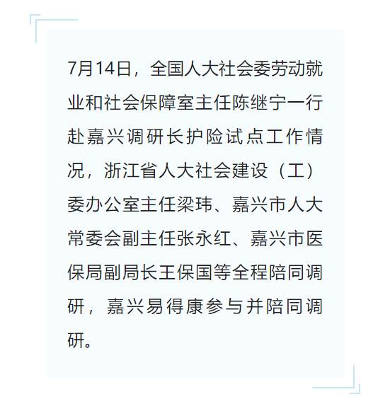 【要聞】嘉興易得康參與接待全國人大領(lǐng)導(dǎo)一行開展長(zhǎng)護(hù)險(xiǎn)調(diào)研工作