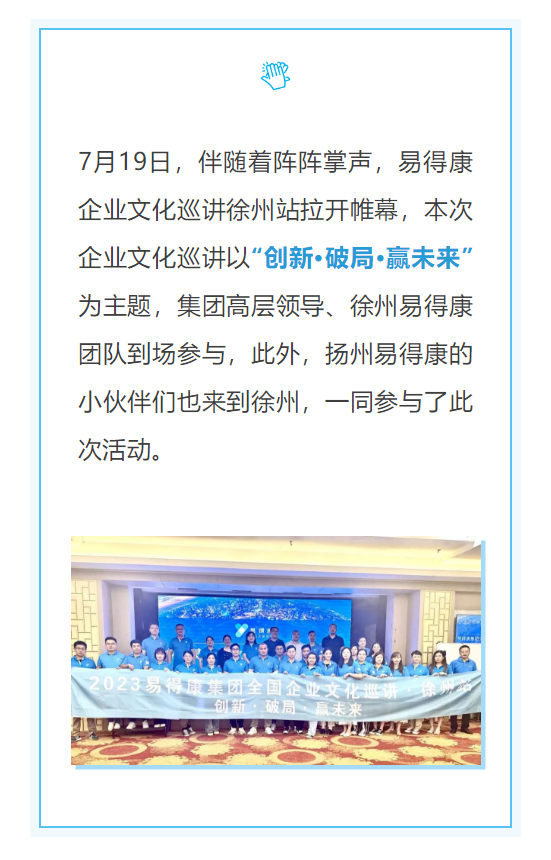 > 公司動態(tài) > 【徐州】賦能前行,勇創(chuàng)佳績——易得康企業(yè)文化巡講走進徐州