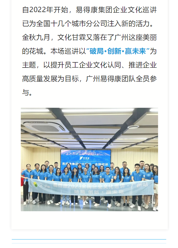 【廣州】破局 創(chuàng)新 贏未來(lái)丨易得康企業(yè)文化巡講廣州站圓滿舉辦!